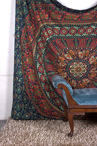 | Le Titre Du Livre | Aakriti Gallery Double Big Flower Mandala Bohemian Hippie Hanging Pattern Indian Psychedelic Mandala Green 234 x 208 cm Green |